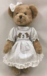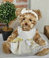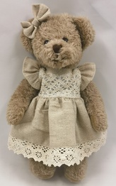 Plyšový medvěd v béžovo zlatých šatičkách velký