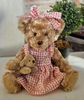 Plyšový medvěd v růžových šatičkách s pejskem