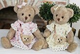 Pár plyšových medvědů v šatičkách s taštičkou