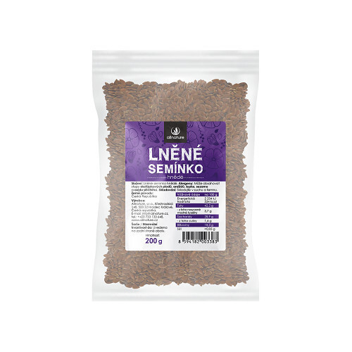 Lněné semínko hnědé je plné živin - vitamín B1, vitamín B2, vitamín B3, vitamín B5, vitamín B6, vitamín E, vápník, měď, železo, mangan, hořčík, fosfor, draslík, selen, zinek, vláknina, bílkoviny, omega-3 nenasycené mastné kyseliny a to vše v jednom semínku. Pomáha zvyšovat kvalitu vlasů, nehtů. A...