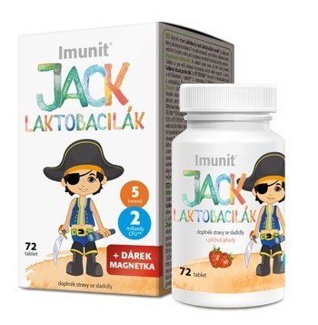 Laktobacily Jack Laktobacilák Imunit je doplněk stravy s unikátní kombinací 5 kmenů laktobacilů a bifidobakterií, 1selenu, silice z fenyklu a prebiotické vlákniny inulin. Denní dávka (2 tablety) obsahuje celkem 2 miliardy aktivních probiotických organizmů.