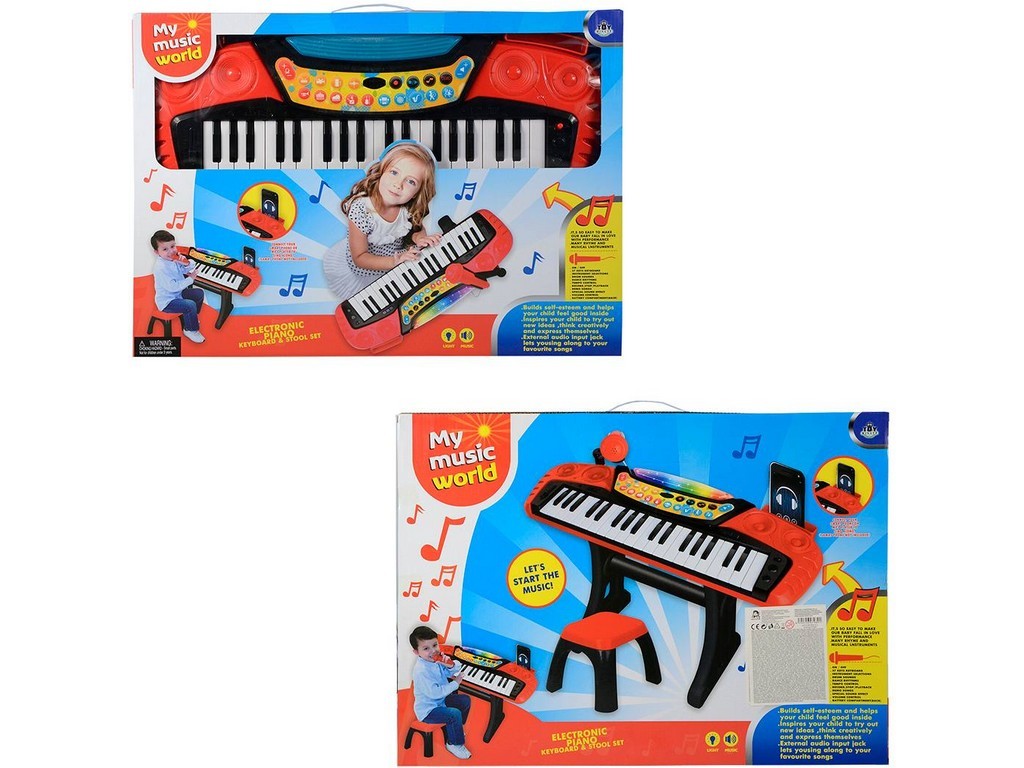 Dětské klávesy v moderním červeném designu se stoličkou a mikrofonem jsou jako stvořené pro začínající hudebníky. Dětské piáno seznamuje dítě s potřebnými dovednostmi hry na hudební nástroj, zlepšuje dětskou motoriku, zároveň rozvíjí hudební sluch a smysl pro rytmus. Rozvíjí hudební představivost...