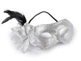 Karnevalová maska - škraboška s peřím - 1 ks - 3 stříbrná
