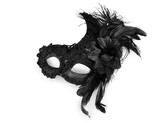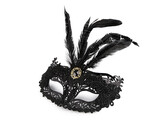 Karnevalová maska - škraboška krajková s peřím - 1 ks - černá