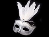 Karnevalová maska GLITRY s peřím - 1 ks - 6 bílá
