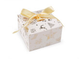 Vánoční dárková krabička se zlatým potiskem a stuhou - 12 ks - 4 bílá stromeček