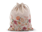 Dárkový pytlík jarní 10x13 cm lněný s květy - 10 ks - 3 režná