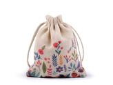 Dárkový pytlík jarní 10x13 cm lněný s květy - 10 ks - 1 režná