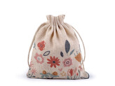 Dárkový pytlík jarní 10x13 cm lněný s květy - 10 ks - 2 režná