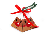Vánoční dárková krabička pyramida - sob, Mikuláš, sněhulák, skřítek - 10 ks - 3 hnědá přírodní sob