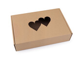 Papírová krabice s průhledem - srdce - 10 ks - 2 hnědá přírodní