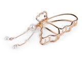 Skřipec do vlasů kovový s perlovým přívěskem - 1 ks - 4 zlatá motýl