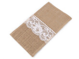 Jutová kapsa na příbory s krajkou 11x20 cm - 4 ks - 4 (13) režná přírodní