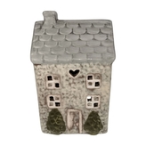Keramický domeček na čajovou svíčku, světle šedý 15,7 cm