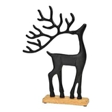 Černý kovový sob na dřevěném mango podstavci 33 x 22 cm