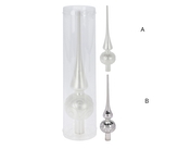 Skleněná vánoční špice 28 cm B, stříbrná lesklá