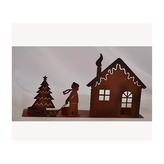Vánoční hnědá kovová dekorace se svícnem, 17 x 32 cm
