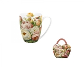 Porcelánový hrnek v košíku - tulipány, 360 ml
