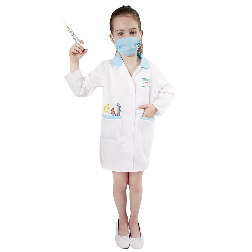 - Súčasťou plášť i rúško - kompletný vzhľad malej doktorky.