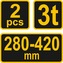 Podpěra pod auto, díky čtyřem nohám je velmi stabilní, má nastavitelnou výšku a je vybavena jistícím mechanizmem.Je určena k zajištění stability vozidla zdviženého heverem. Vedle heveru patří mezi základní výbavu dílny či garáže.Technická data sada2 ksnosnost3 000kgvýška280 - 420 mmbarvažlutá