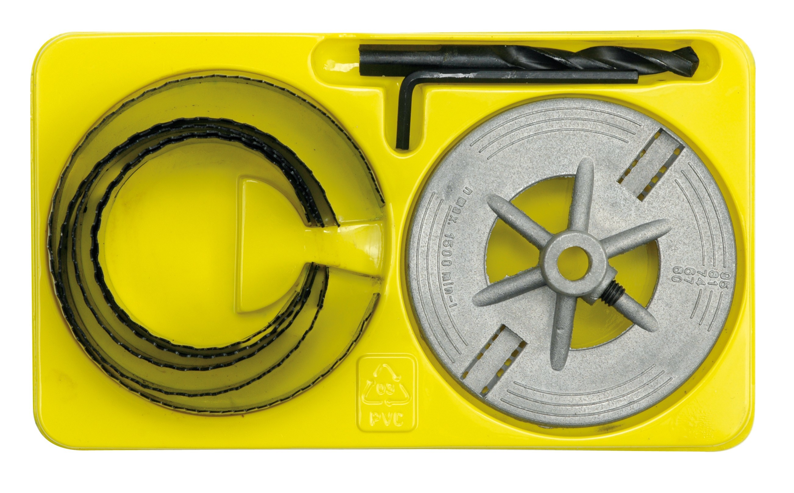 Sada pěti výkružníků píl namontovaných v držáku poháněném elektrickou vrtačkou. Rozsah průměrů od 60 mm do 95 mm. Středový bod je nastaven centrovacím vrtákem.Pro řezání děr do dřeva, materiálů na bázi dřeva a některých plastů do hloubky cca 17 mm.Technická data Průměr výkružníků60; 67; 74; 81;...