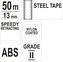 Měřící pásmo o délce 50 m s šířkou 13 mm.