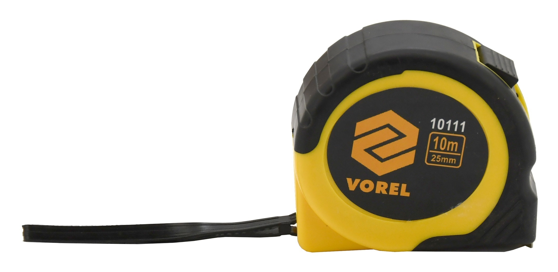 Svinovací metr 10 m dlouhý a 25 mm široký zakončený pohyblivým háčkem. Pouzdro je vyrobeno z plastu, vyztuženo gumovými podložkami a aretačním knoflíkem. Pouzdro má klip pro připevnění. délka pásma 10 m šířka pásma 25 mm prečítať celé