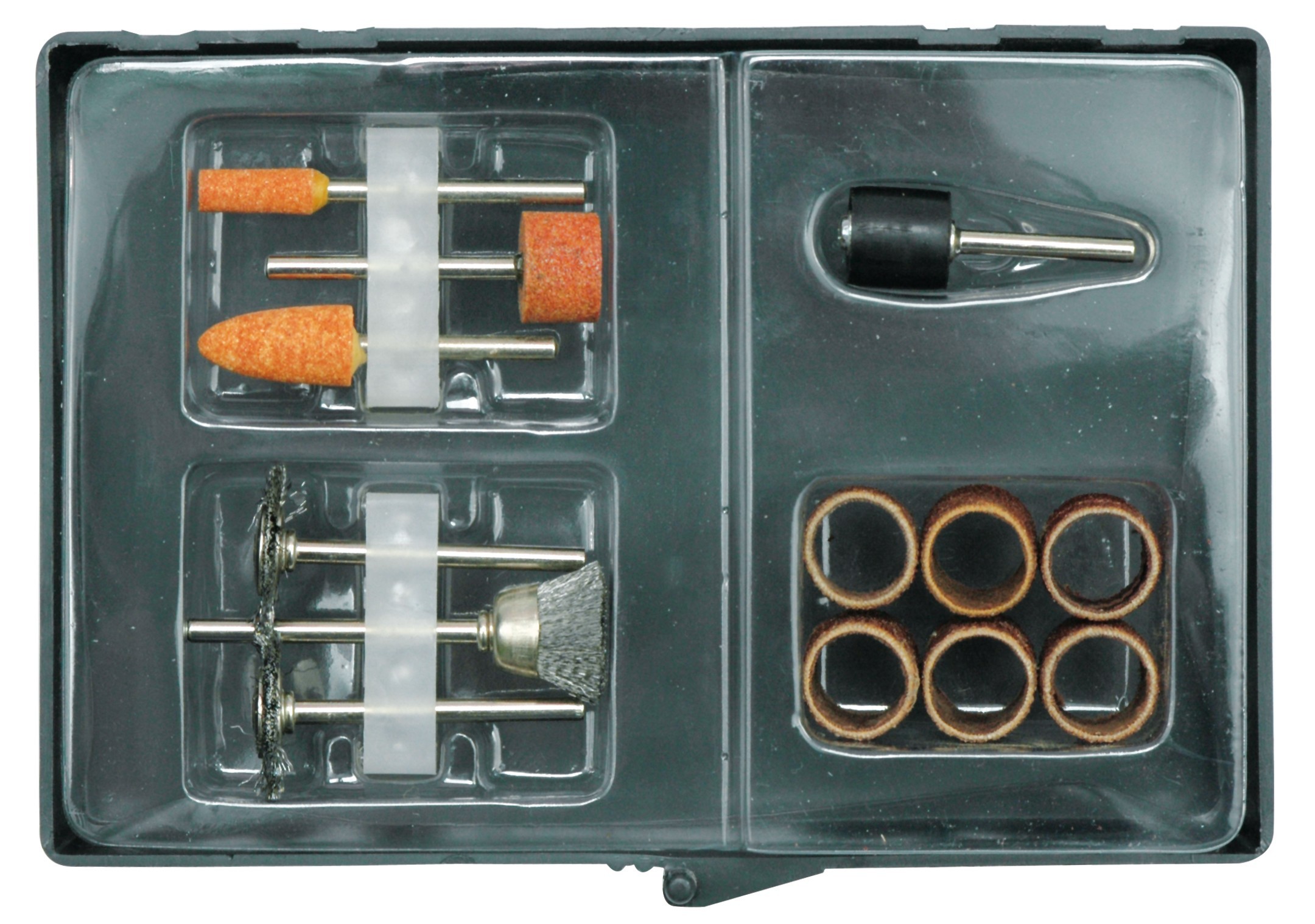 Sada 13 doplňků k doplnění základního vybavení rovné brusky. Umožňuje rychlou, snadnou a hospodárnou práci. Příslušenství umožňuje přesné zpracování malých prvků. Vhodné pro brusky s otvorem nástroje 3,2 mm.