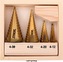 Sada 4 ks stupňovitých kuželových vrtáků na kov umožňující postupné vyvrtání více průměrů otvorů.