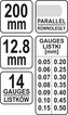 Kvalitní ocelové měrky na spáry sada 10 listů. Jednotlivé listy jsou šířky 12,8 mm a délky 200 mm zhotoveny z pružinové oceli.  0,05 / 0,06 / 0,07 / 0,08 / 0,09 / 0,1 / 0,15 0,2 / 0,25 / 0,3 / 0,35 / 0,4 / 0,45 / 0,5    délka 200 mm  šířka 12,8 mm  počet listů 14  tvar paralelní  materiál...
