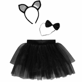 Kostýmový set kočka – čelenka, sukýnka a mašle