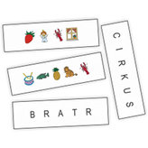 Hádanky - kartičky pro analýzu první hlásky z obrázku a syntézu slova z hlásek obrázků