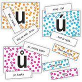 Samohlásky u-ú-ů - slovní spojení na kartičkách k procvičení psaní u/ú/ů