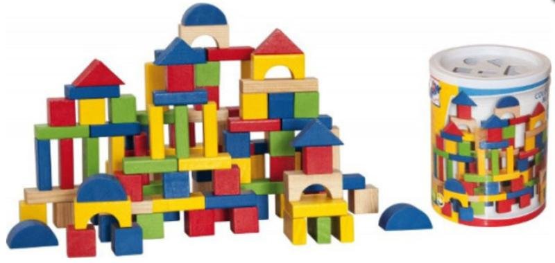 Táto robustná a farebná súprava drevených kociek ponúka celkovo 100 dielov rôznych veľkostí, ktoré je možné ľubovoľne skladať a kombinovať. Vaše dieťa môže stavať stále nové a nové tvary, čo prináša nekonečnú zábavu a rozvíja jeho schopnosti logického myslenia.