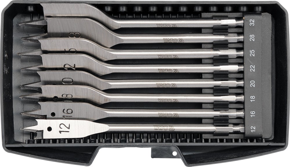 • Vrtáky do dřeva ploché sada 8 kusů Yato 12 - 32 mm