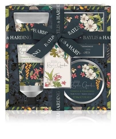 Baylis & Harding Royale Garden sprchový krém Royale Garden Verbena & Chamomile 130 ml + tuhé mýdlo Royale Garden Verbena & Chamomile 150 g + tělové máslo Royale Garden Verbena & Chamomile 100 ml