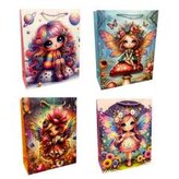 Torebka prezentowa uniwersalna M Kwiaty brokat mix
