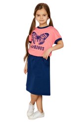 Dívčí šaty GLORIOUS s motýlem růžovomodré, velikost: 152