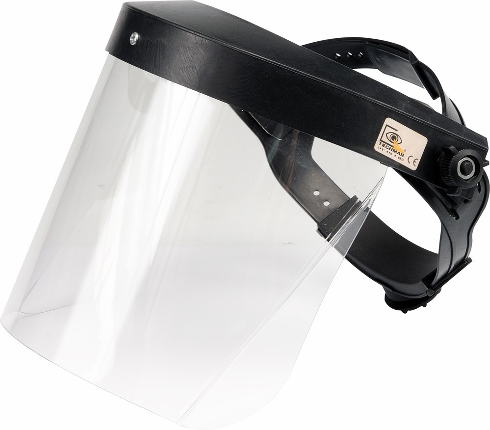 Čelní štít s výměnným čirým polykarbonátovým hledím, opatřený nastavitelnou přeskou a vyklápěcím mechanismem. Chrání proti stříkajícím kapalinám a proti nárazům pevných částic. Určeno k ochraně obličeje během nebezpečných prací, jako je broušení, vrtání, řezání atp. Technická data Zhotovení...