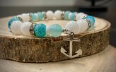 Náramek s přívěskem Srdíčko - Morganit & perla