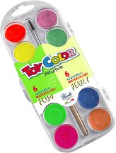 barvy vodové 30mm Toy color fluo 6ks + perleť 6ks