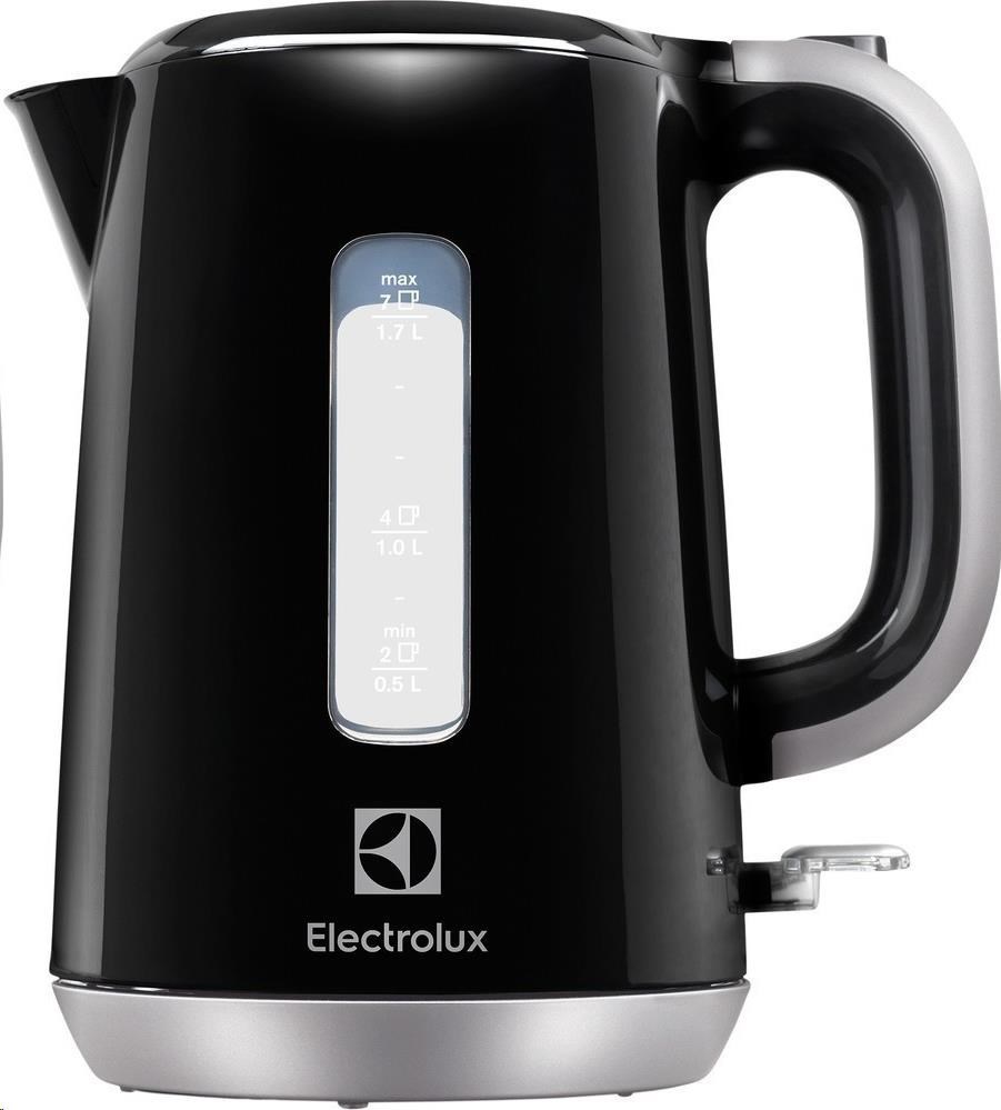 Rychlovarná konvice, příkon 2200W, objem 1,7l, praktické otvírání víka jednou rukou, zakryté topné těleso leštěnou nerezovou ocelí, rovné dno, ochrana proti přehřátí, kontrolka zapnuto, ukazatel vodního sloupce na obou stranách, vyjímatelný filtr na vodní kámen, otočný podstavec 360° barva černá/šedá