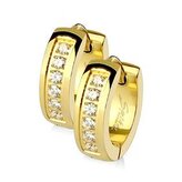 OPN1154-GD Zlacené ocelové náušnice - kroužky se zirkony