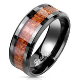 OPR1961-65 Pánský ocelový prsten dekor dřevo