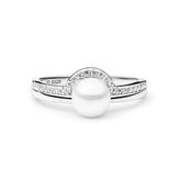 GA4008W-51 Stříbrný prsten s bílou perlou a zirkony