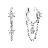 EG9044 Stříbrné náušnice kroužek a řetízek s kytičkami - květiny