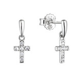 EG9053 Stříbrné náušnice visací křížek se zirkony