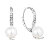 EG2805 Stříbrné náušnice visací s bílou říční perlou