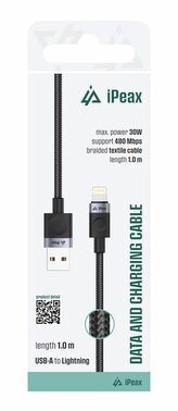 iPEAX textilní kabel USB-A / Lightning 1M, USB 2.0 černý