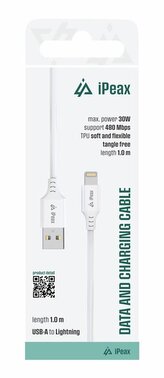 iPEAX TPU kabel USB-A / Lightning 1M, USB 2.0 bílý